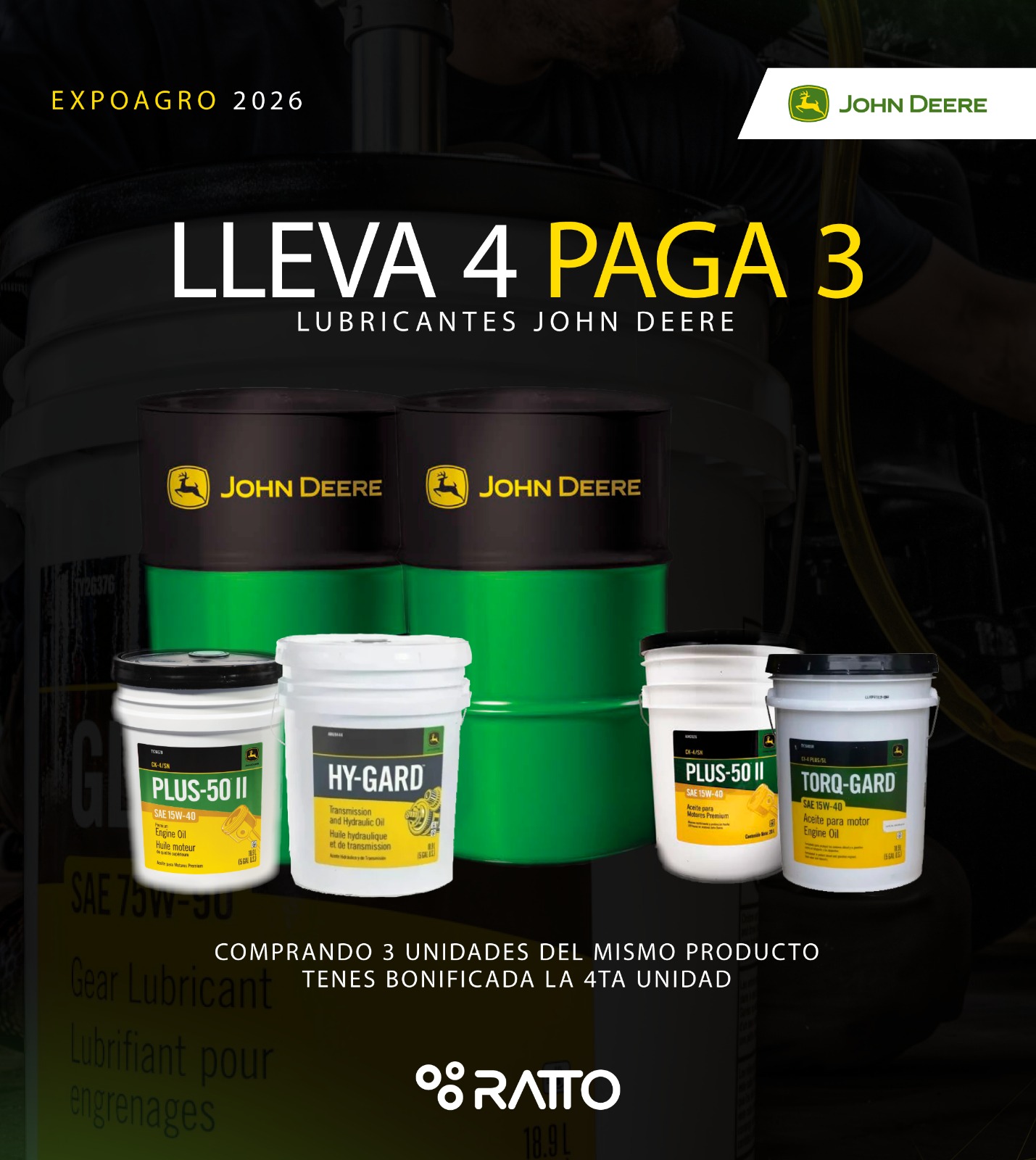 Del 10 al 13 de Marzo, en la compra de Lubricantes John Deere, llevá 4, pagá 3, durante Expoagro!!!