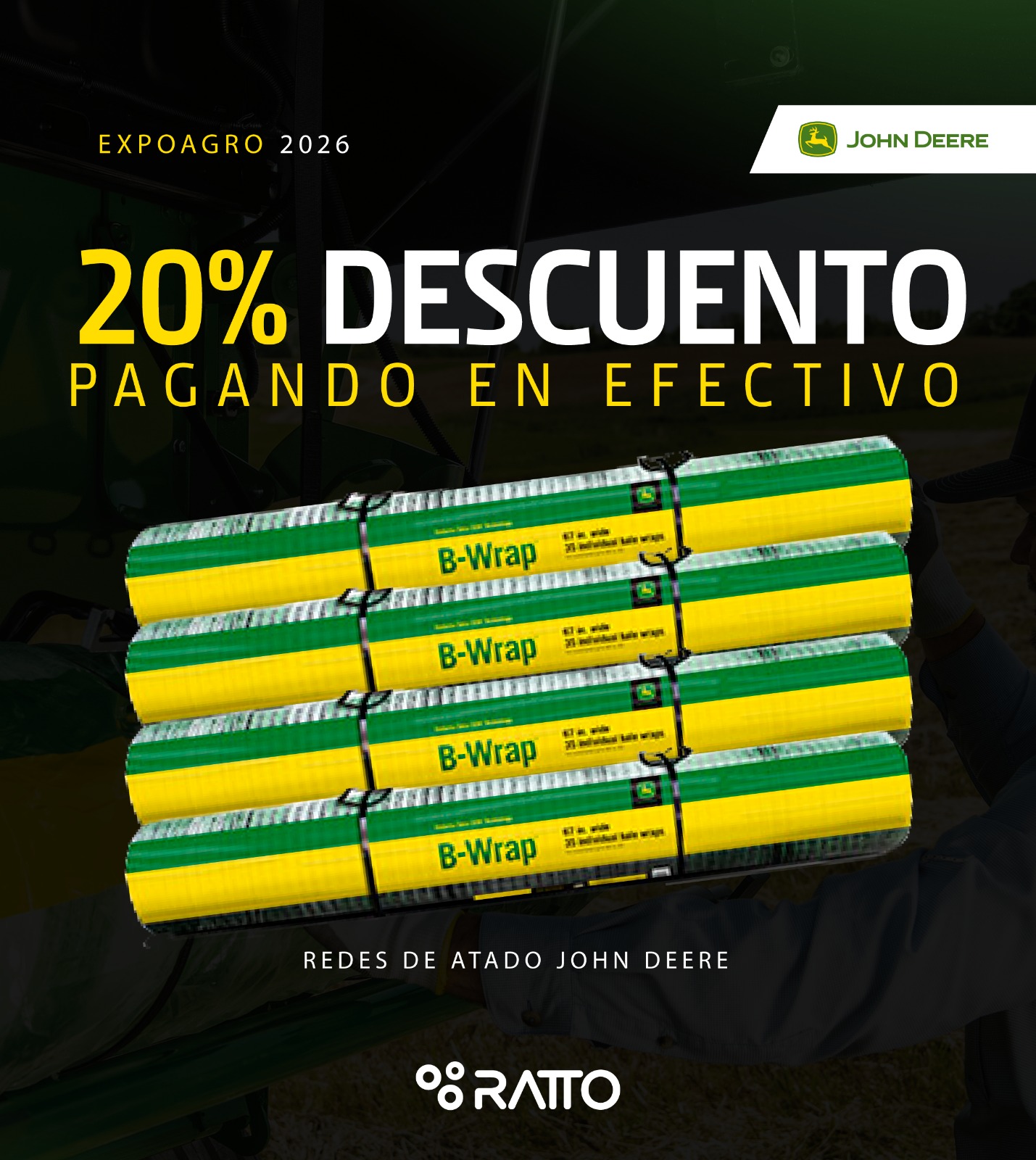 Del 10 al 13 de Marzo, aprovechá un 20% de Descuento comprando redes de atado John Deere durante Expoagro!!!