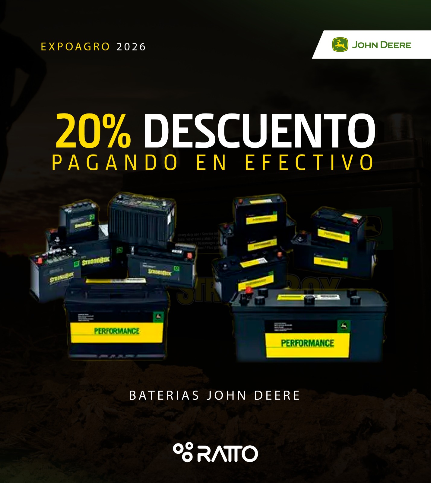Del 10 al 13 de Marzo, aprovechá un 20% de Descuento comprando Baterías John Deere durante Expoagro!!!